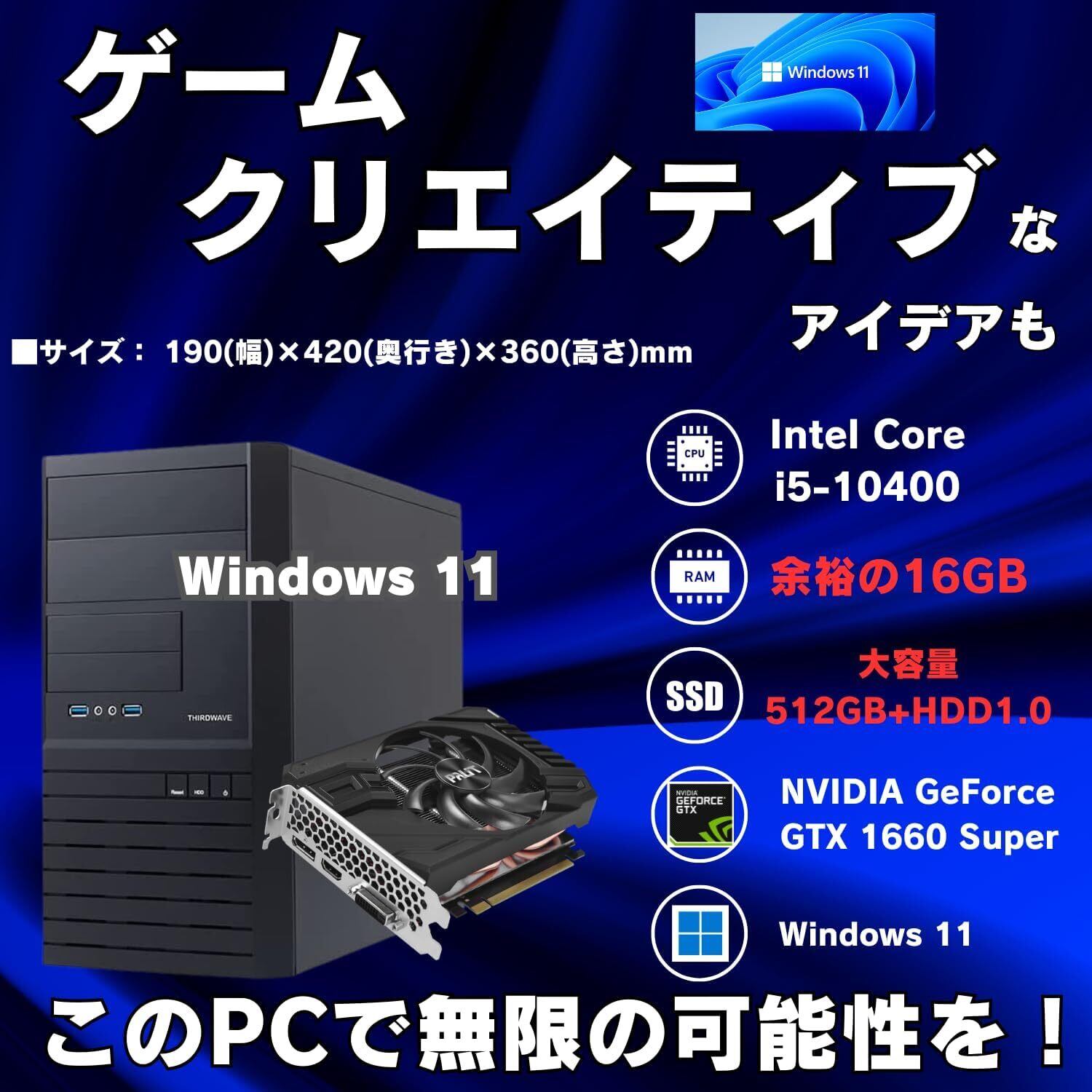 【整備済み品】ゲーミングPC Diginnos 第10世代CPU Core i5-10400 - GTX 1660 Super - 16GBメモリ - SSD512GB+HDD1.0TB - Windows 11 - ゲームPC デスクトップ パソコン B0D5CSLJ9J