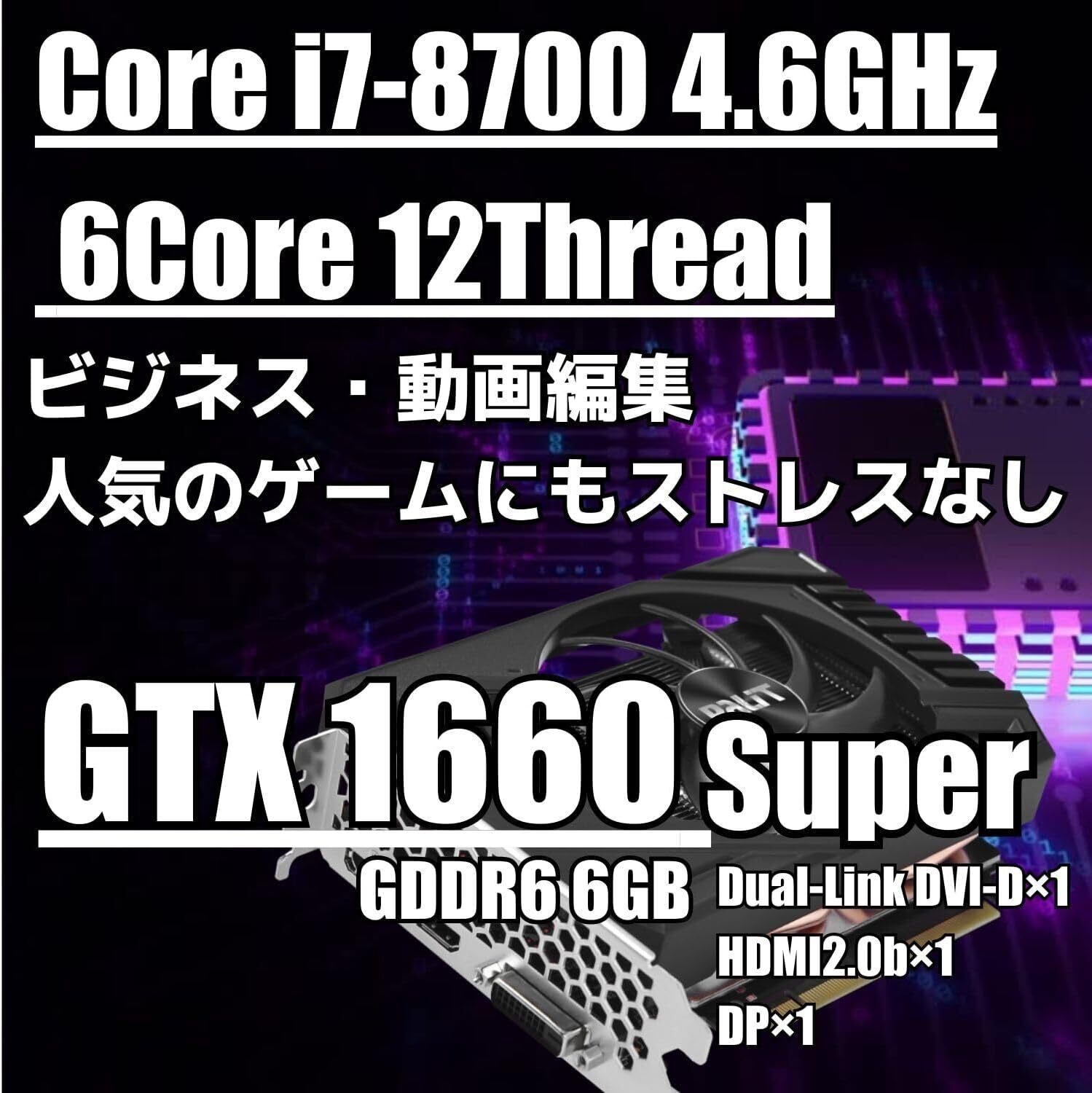 【主なスペック】 強力な**Intel Core i7-8700プロセッサー**(8コア/最大4.60GHz)と、リアルな映像表現を可能にする**NVIDIA GeForce GTX 1660 Super**。16GBのメモリと1TBのSSDを備え、ゲームも作業も快適にこなせます。
