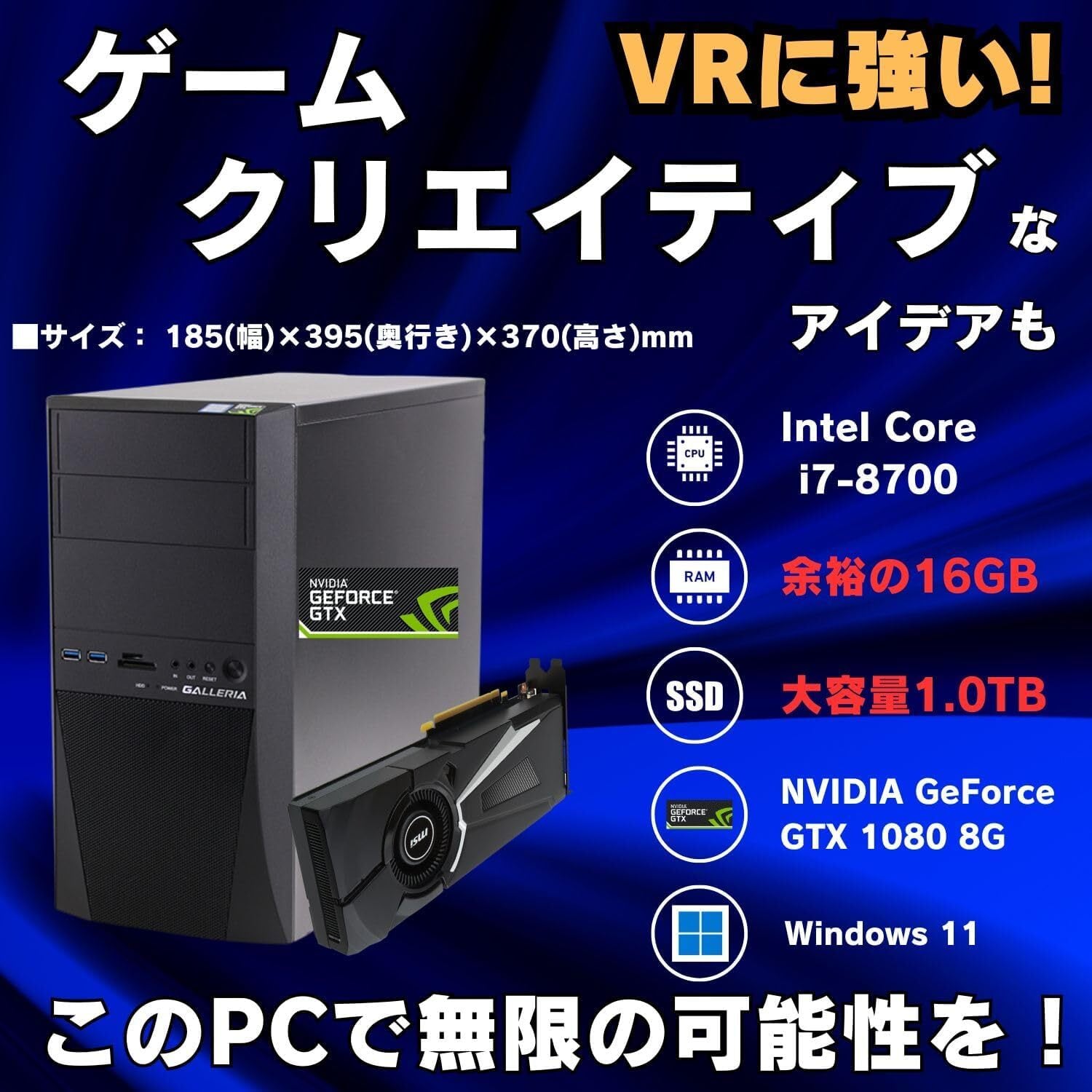 【整備済み品】ゲーミングPC デスクトップ パソコン GALLERIA Core i7-8700 - Geforce GTX 1080 8G - 16GBメモリ - SSD 1.0TB - Windows 11 - ガレリア ゲームPC VR B0DJ29797H