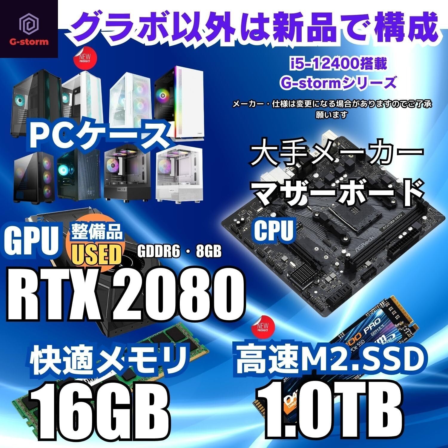 【整備済み品】G-storm ゲーミングPC Corei5 12世代 - Core i5-12400F / RTX 2080 8G - 16GBメモリ - 1.0TBSSD - Windows 11 WPS Office2 ゲームPC OFFICE付 デスクトップ (i3NEO ホワイト) B0DHX5SHRL