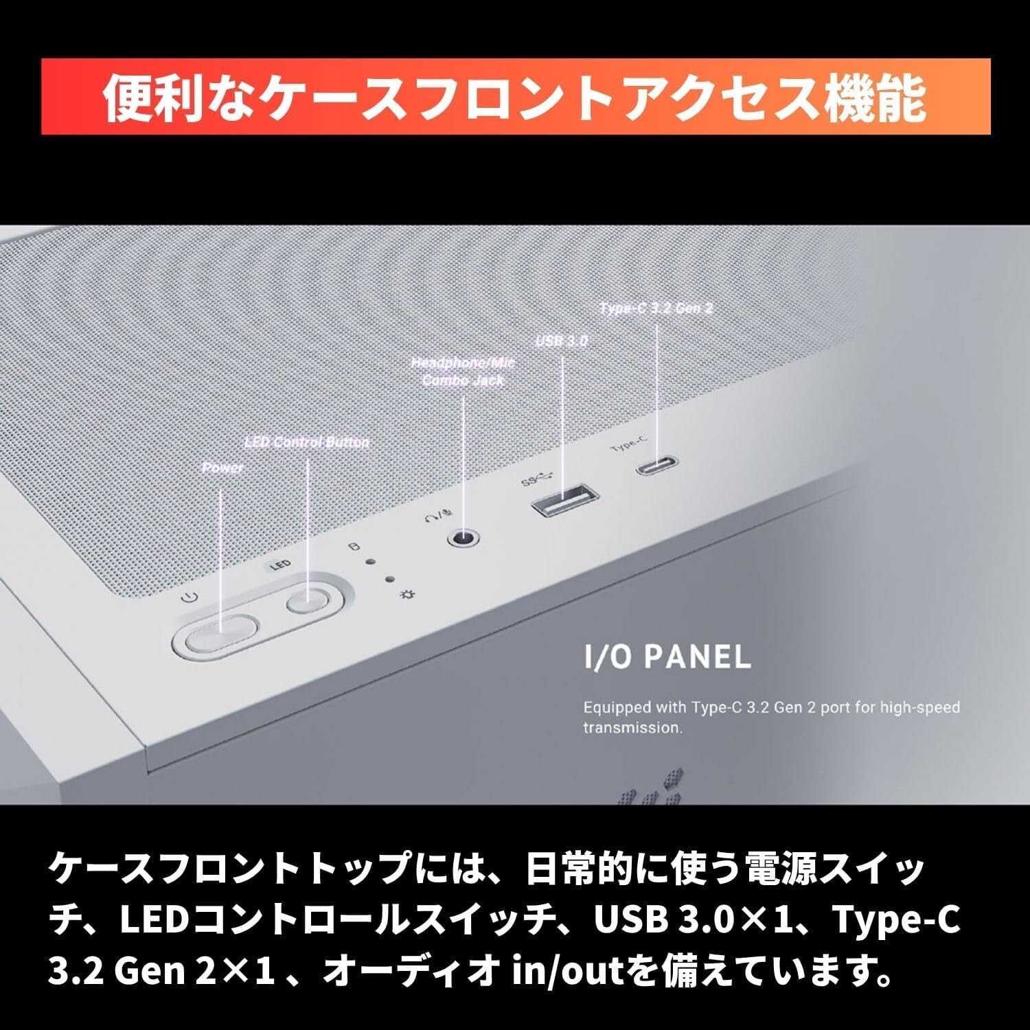 ✅【スタイリッシュ&冷却性能◎】水冷CPUクーラー+ホワイト筐体 白を基調にした近未来デザインのタワー型筐体に、水冷CPUクーラーを標準搭載。高負荷時でも静かで冷却性能が高く、長時間の編集作業やゲームプレイも安定。インテリアに映えるビジュアルも魅力です。