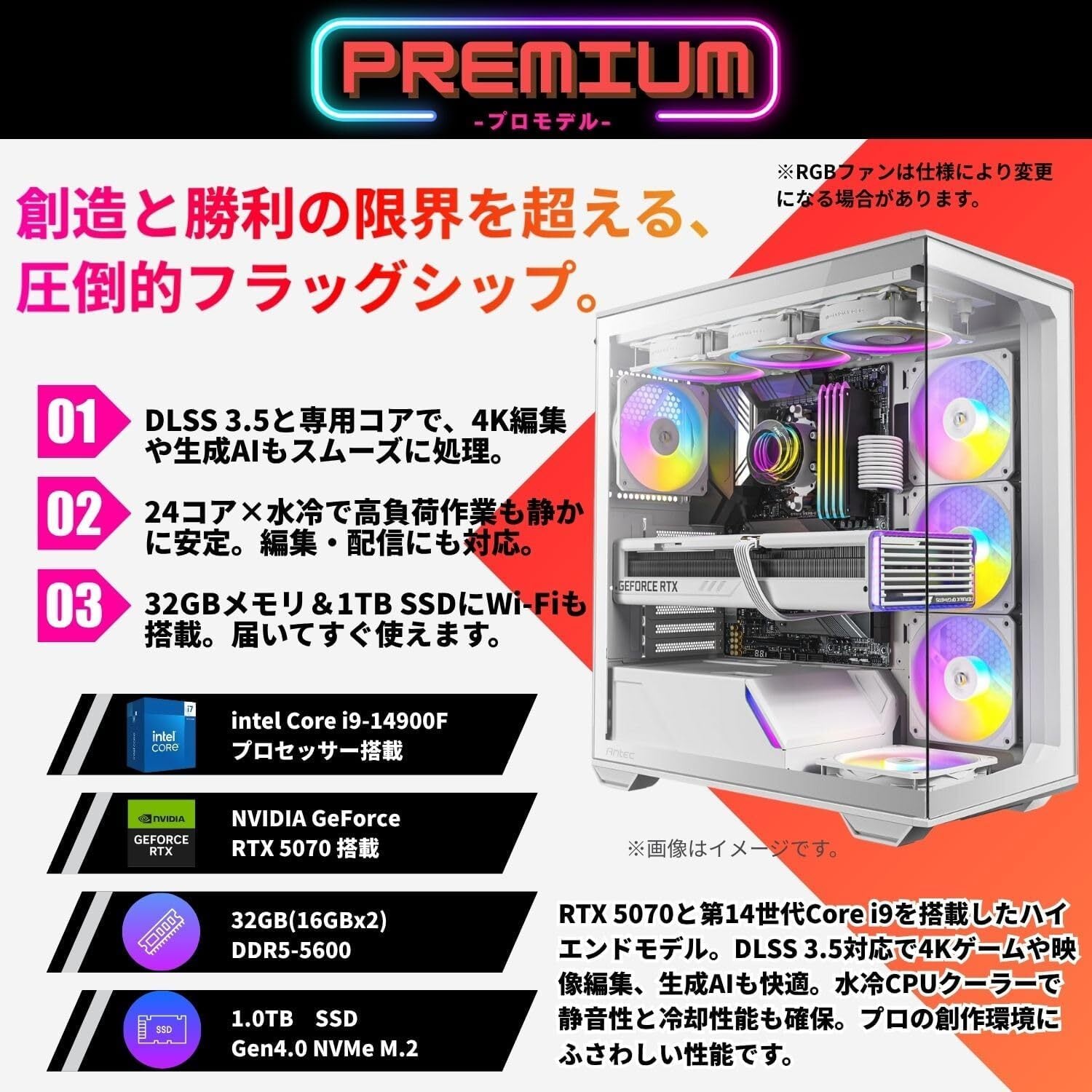 Geame ゲーミングPC タワー型 G-StormXi / Core i9-14900F / RTX 5070 / 32GBメモリ / SSD 1TB / 水冷クーラー / Windows 11 / Wi-Fi搭載 / ホワイトモデル / 生成AI・動画編集・ゲーム・クリエイター対応モデル
