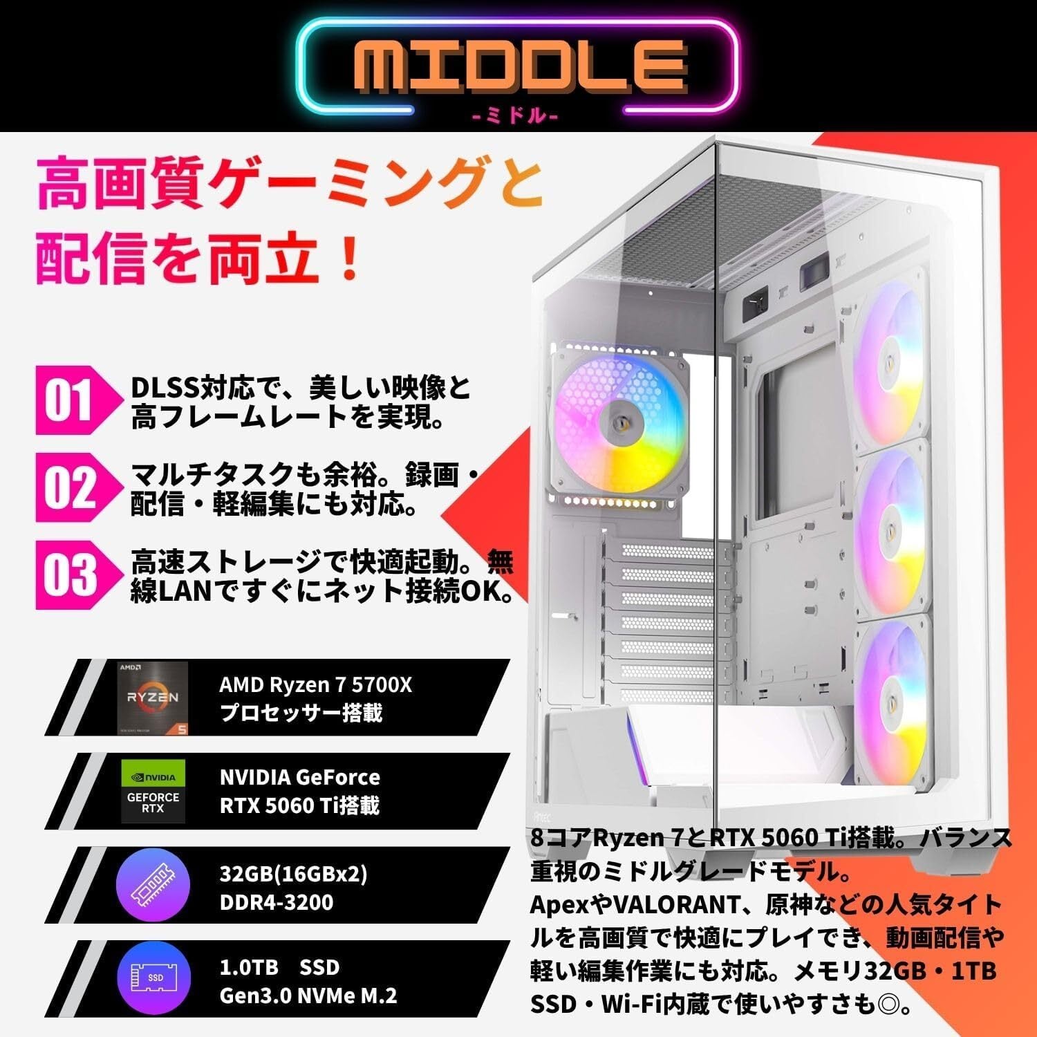 [Geame] ジーム ゲーミングPC デスクトップ パソコン タワー型 ゲームピーシーGeforce RTX5060 Ti Ryzen7 5700X cpu 32GB メモリ 1.0TB SSD WiFi Windows11 クリエイタ AI 動画編集 gaming G-StormXa (ホワイト・1) B0FBM1RHDS