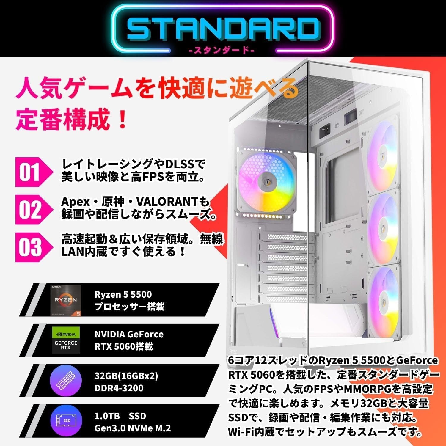 Geame ゲーミングPC デスクトップ タワー型 / Ryzen 5 5500 / GeForce RTX 5060 / メモリ32GB / SSD 1TB / Wi-Fi搭載 / Windows 11 / 生成AI・動画編集・ゲーム・クリエイター対応モデル