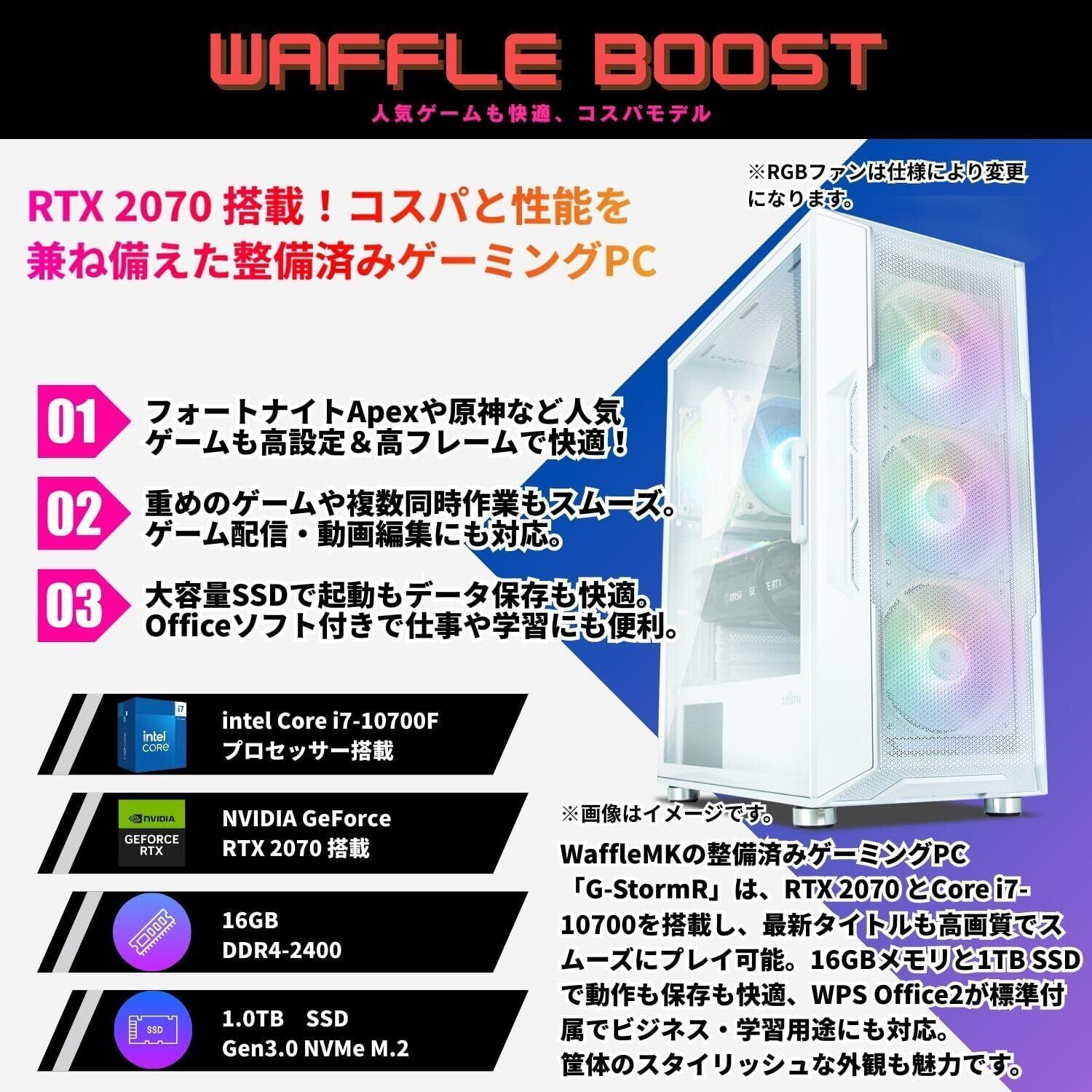 【整備済み品】ゲーミングPC デスクトップ タワー型 G-StormR 第10世代 Core i7-10700 / RTX 2070 / メモリ16GB / SSD1.0TB / Windows 11 / WPS Office2付き / ホワイトモデル2 フォートナイト・原神・Apex対応 B0F9Y4XH56