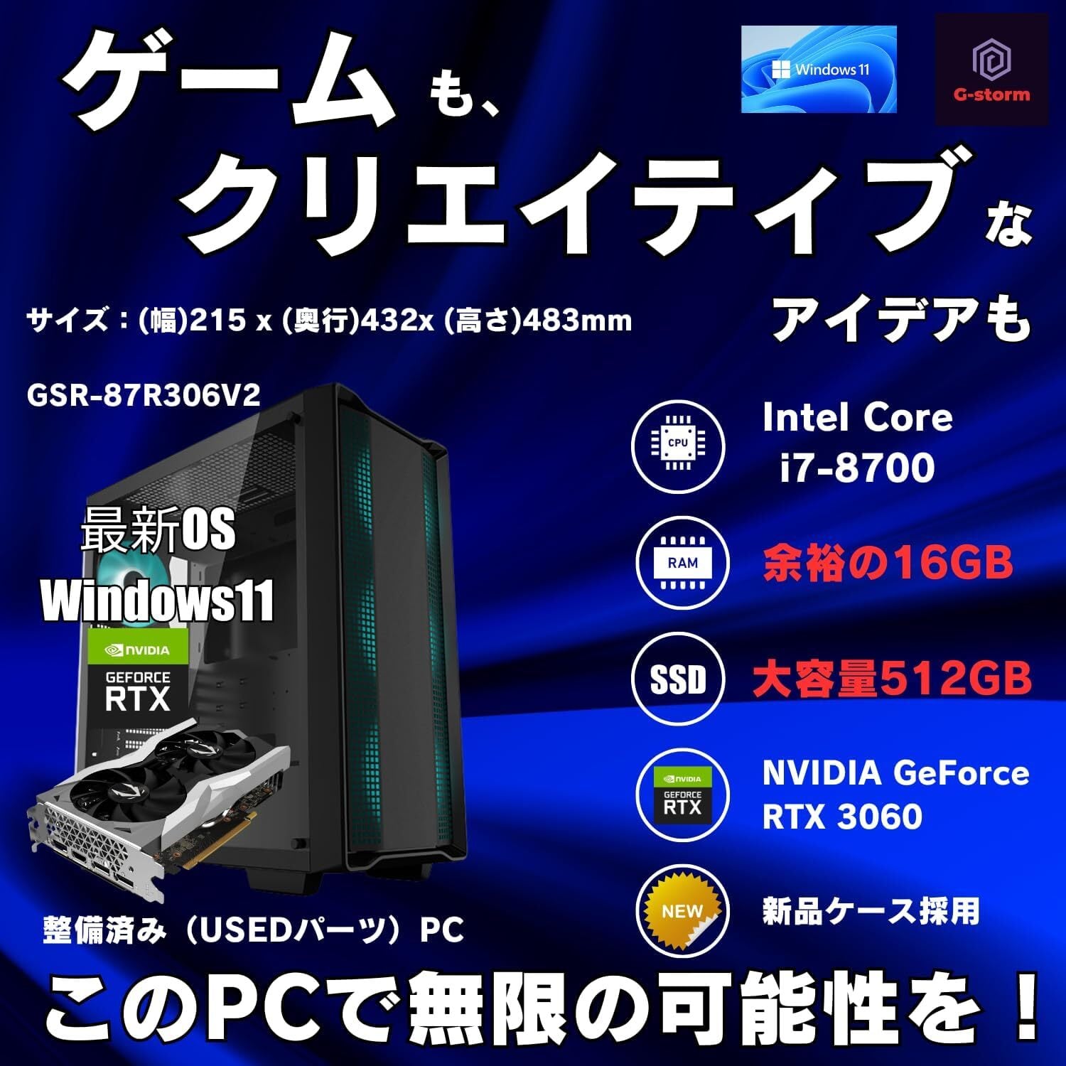 【整備済み品】 ゲーミングPC デスクトップPC タワー型 G-StormRシリーズ Core i7 8700 - GeForce RTX 3060 12GB - 16GBメモリ - SSD512GB - Windows 11 B0CNYB55VX