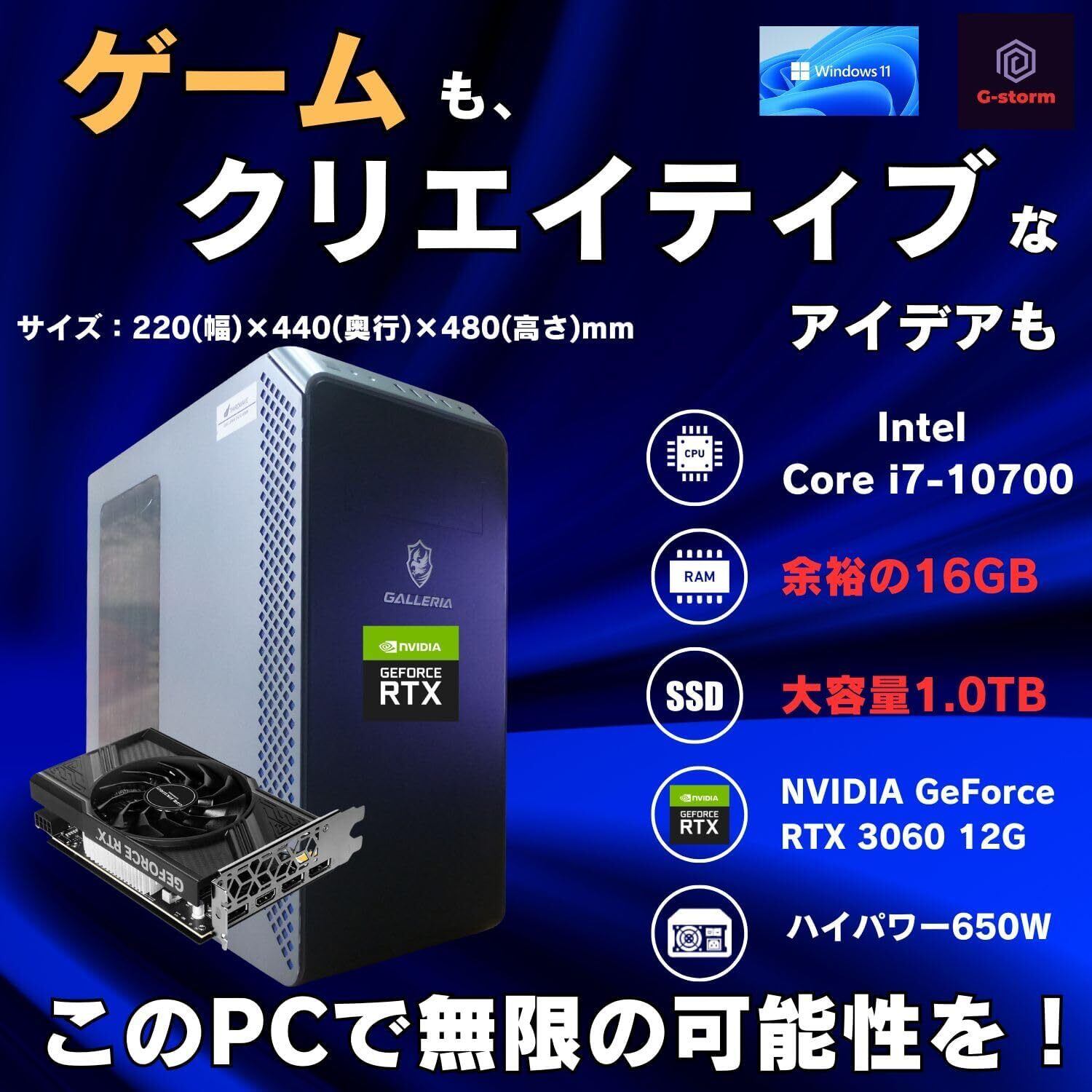 3. 【大容量メモリ&ストレージで余裕のマルチタスク】 16GBメモリと1TBのNVMe SSDを搭載。ゲームのロード時間短縮、複数アプリの同時使用、配信・録画・編集作業などにおいてもスムーズな処理が可能です。