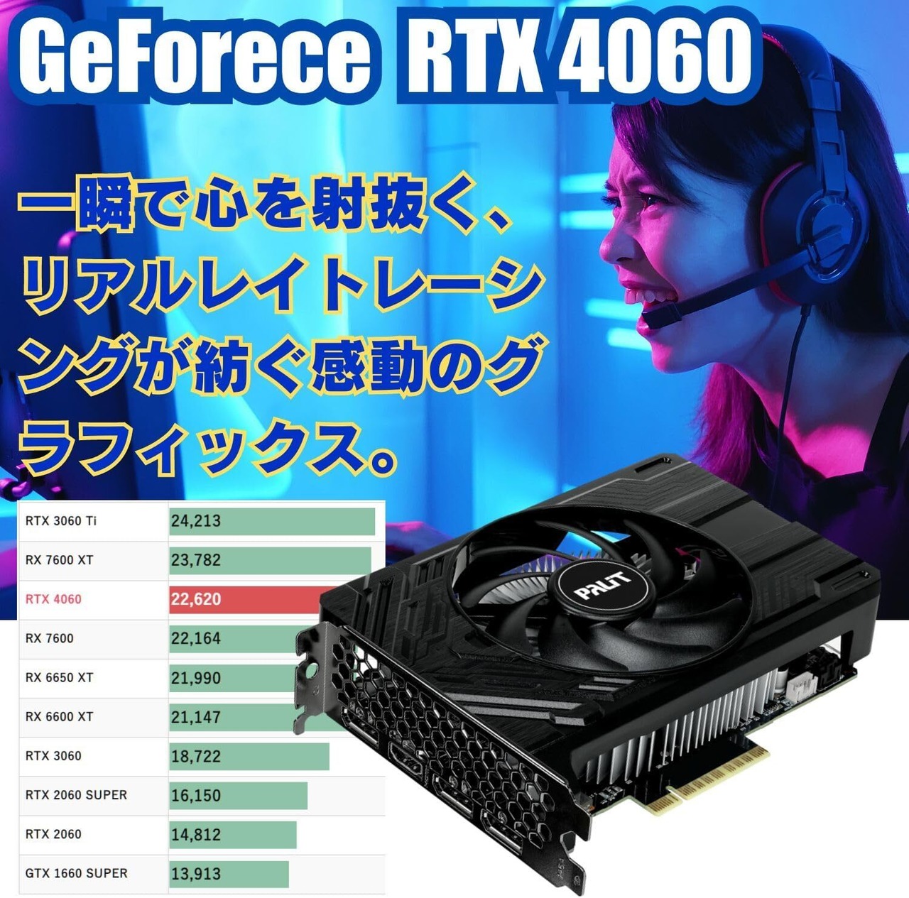 2. **NVIDIA GeForce RTX 4060 8GB グラフィックカード** NVIDIA GeForce RTX 4060 8GB GPUを採用し、リアルタイムレイトレーシングとDLSS 3.0に対応。これにより、圧倒的な映像美と高フレームレートでゲームを楽しめます。また、VR対応で、バーチャルリアリティ環境でも没入感の高い体験が可能です。さらに、生成AI(Generative AI)技術を活用した最新機能もサポートしており、AIによるアートワーク生成や3Dレンダリングを効率的に行えるパワフルなグラフィック性能を発揮します。