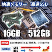 ③ すぐに使える充実の基本スペック メモリ:16GB搭載で、ゲーム中の動作もスムーズ ストレージ:512GB SSDにより、高速な起動と読み書き性能を実現 Windows 11インストール済みで、すぐに最新環境でスタート可能 ゲームキーボード付属で、届いてすぐにプレイ開始!