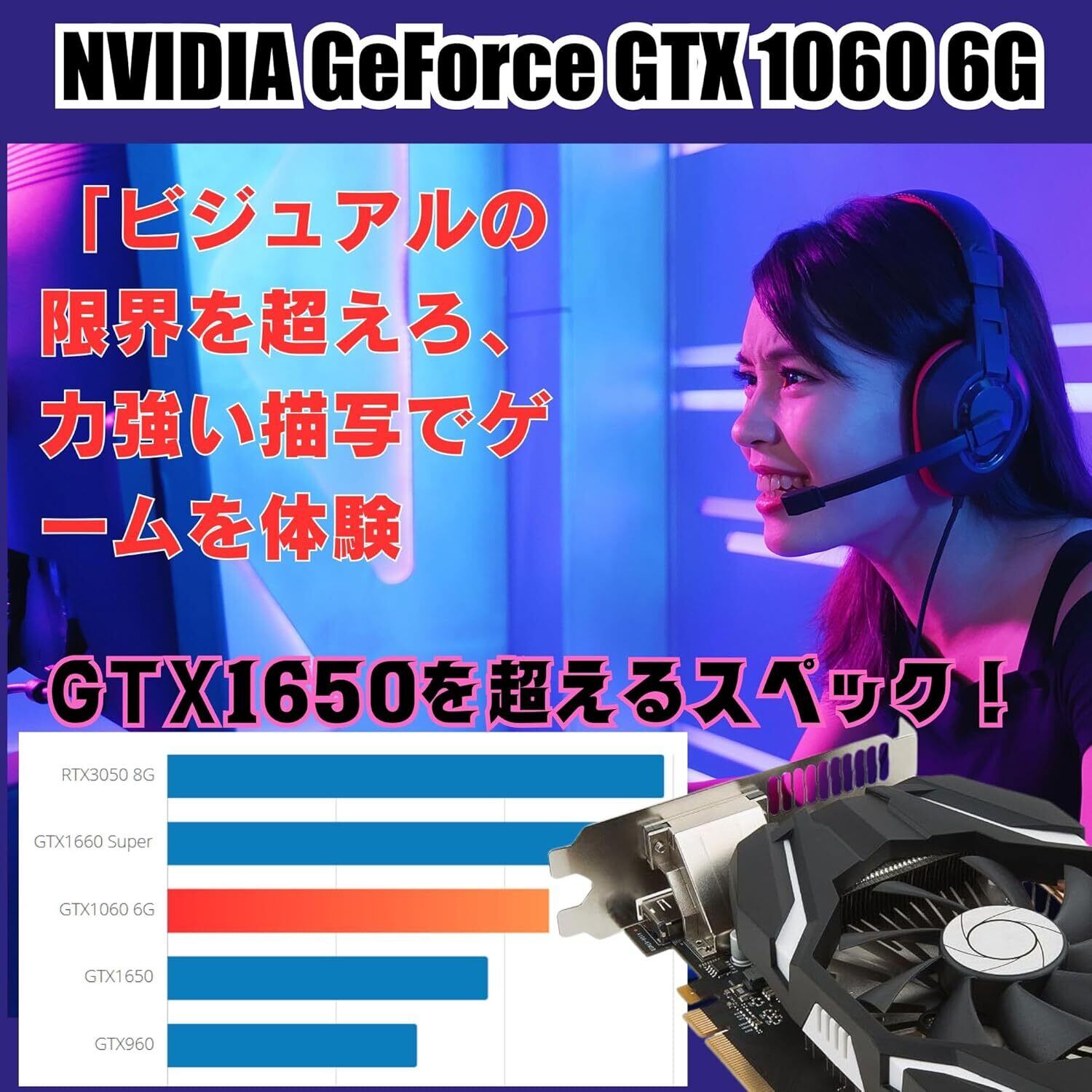 ③ GeForce GTX 1060 3GB 搭載 実績あるGTX 1060を搭載し、軽?中量級の人気タイトルを快適にプレイ。eスポーツ系ゲームを中心に、快適なグラフィック体験が楽しめます。DLSSやレイトレーシングには非対応ですが、価格帯を超える実力を発揮します。