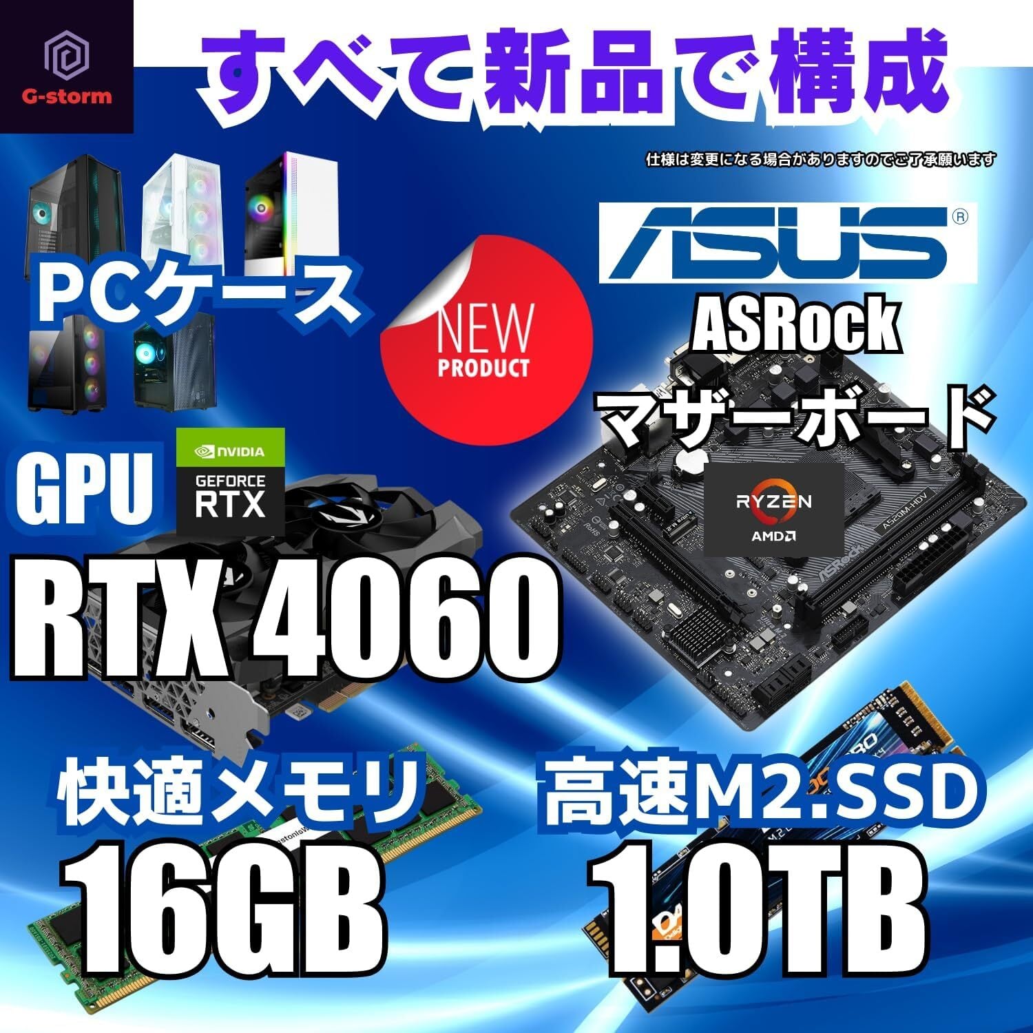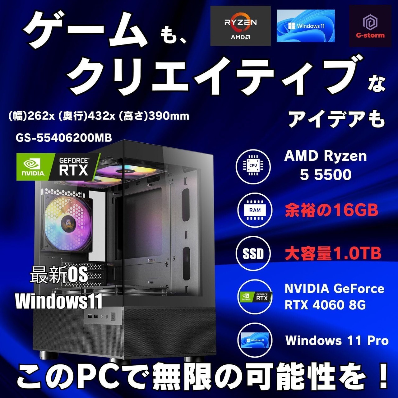 ゲーミングPC デスクトップPC タワー型 G-Stormシリーズ AMD Ryzen 5 Ryzen 7 gaming PC 4500 - GeForce 16GBメモリ SSD512GB Windows 11 WPS Office2 ゲームPC OFFICE付