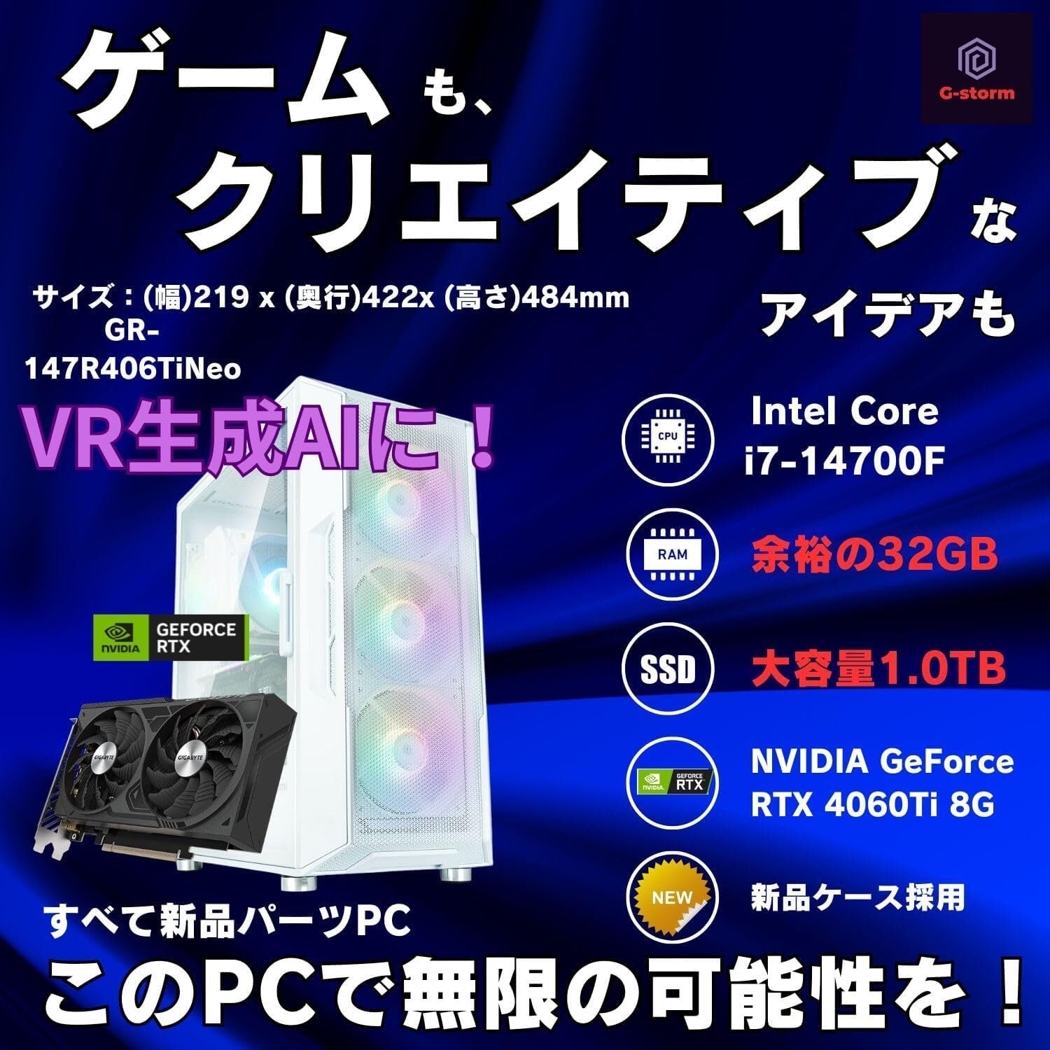 【整備済み品】G-storm ゲーミングPC Corei7 14世代 - Core i7-14700F / RTX 4060 Ti 8G - 32GBメモリ - 1.0TBSSD - Windows 11 WPS Office2 ゲームPC OFFICE付 デスクトップ(i3NEO ホワイト) B0DK2WNL2K