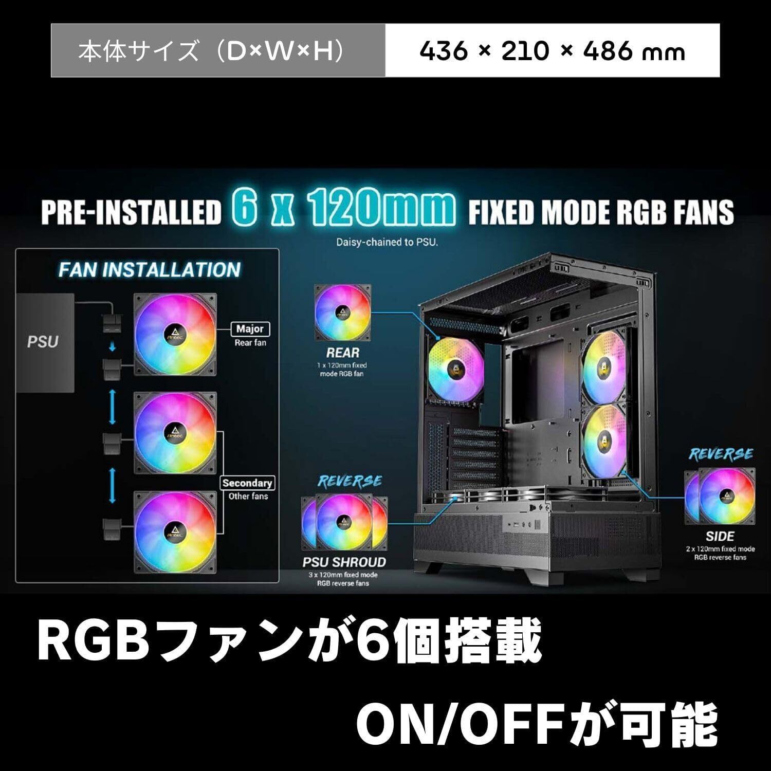 ③ 【人気ゲームでのFPS実測値|安心の高性能】 RTX 3060の性能を活かし、以下のような実パフォーマンスが期待できます: Apex Legends(中~高設定):平均120~160fps 原神(最高設定):常時60fps安定 Fortnite(競技設定):平均180~220fps 144Hz~240Hzゲーミングモニターとの組み合わせで、なめらかで快適なゲームプレイが可能です。