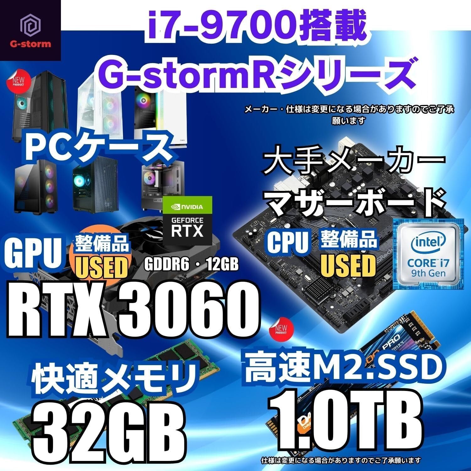 【整備済み品】ゲーミングPC デスクトップ タワー型 G-StormR 第9世代 Core i7-9700 / RTX 3060 / メモリ32GB / SSD1.0TB / Windows 11 / WPS Office2付き / ブラックモデル フォートナイト・原神・Apex対応 B0D35C2923
