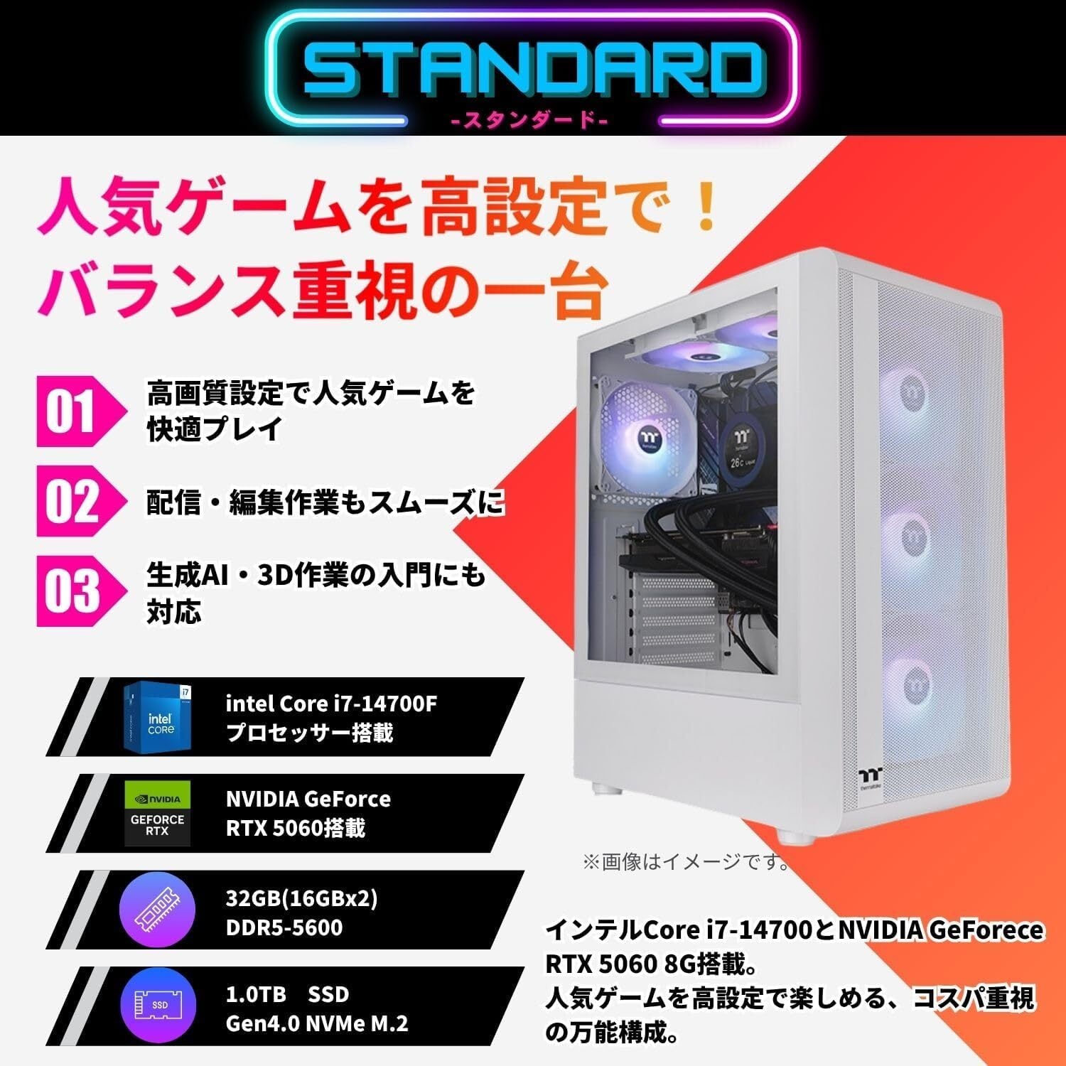 Geame ゲーミングPC タワー型 G-StormXe / Core i7-14700F / GeForce RTX 5060 / メモリ32GB / SSD 1TB / Windows 11 / Wi-Fi搭載 / 生成AI・動画編集・ゲーム・クリエイター対応モデル
