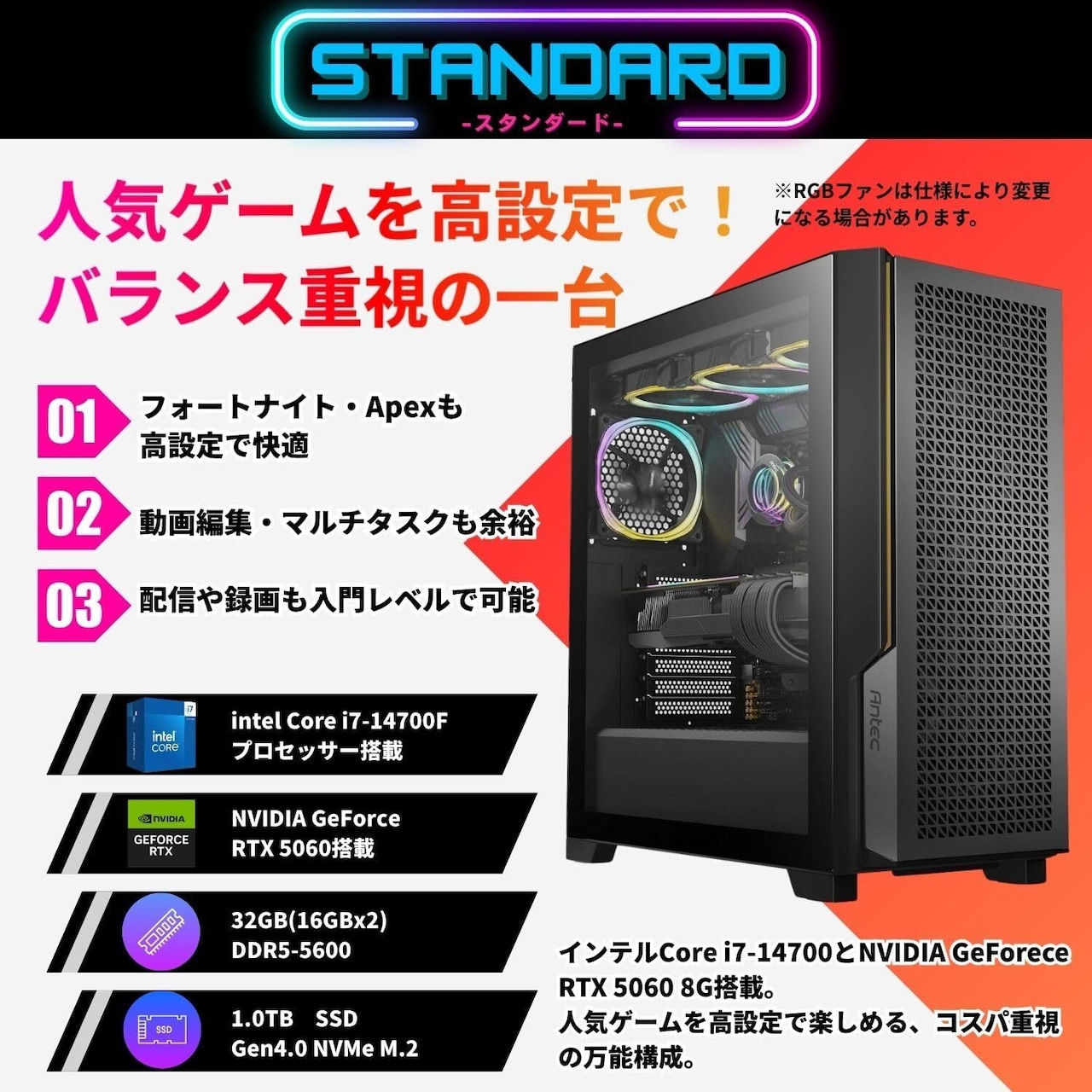 Geame ゲーミングPC タワー型 G-StormXe / Core i7-14700F / GeForce RTX 5060 / メモリ32GB / SSD 1TB / Windows 11 / Wi-Fi搭載 / 生成AI・動画編集・ゲーム・クリエイター対応モデル