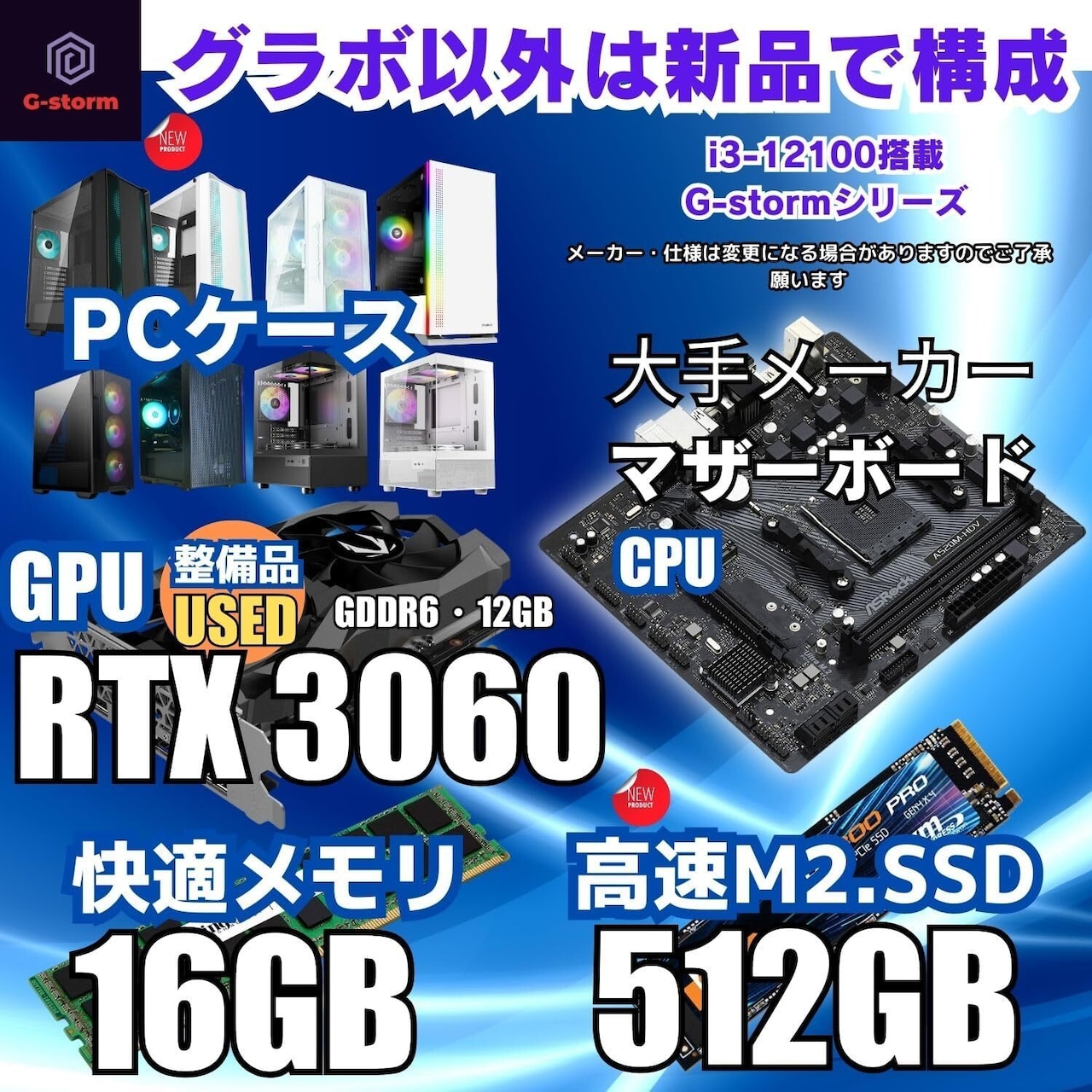 【整備済み品】 G-storm ジーストーム ゲーミングPC - Corei3 12世代 - GeForce RTX 3060 12G - 16GBメモリ - 512GBSSD - Windows 11 WPS Office2 ゲーム OFFICE付 デスクトップ 生成Ai VR エイペックス フォートナイト ホワイト B0DVPNJYB1