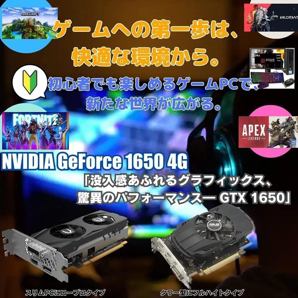 ✅【GeForce GTX 1650 搭載 ─ 軽〜中量級ゲームに最適】 GTX 1650は省電力ながら、フルHD環境で多くの人気タイトルに対応可能。Minecraftやフォートナイトは中〜高設定、Apex Legendsも中設定で快適にプレイでき、eスポーツ系のゲーム入門にぴったりのGPUです。