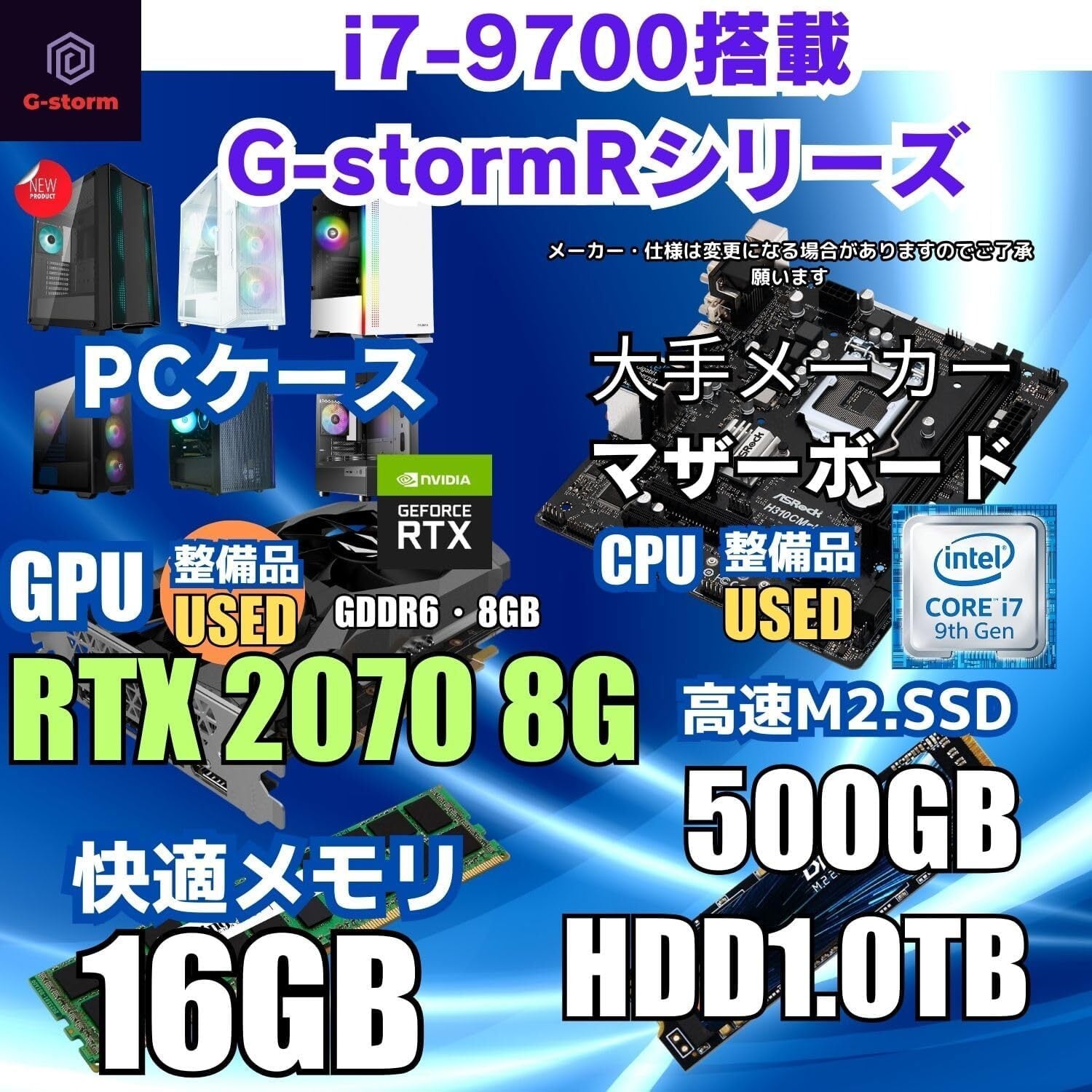 【整備済み品】ゲーミングPC デスクトップ タワー型 G-StormR 第9世代 Core i7-9700 / RTX 2070 8G / メモリ16GB / SSD 500GB HDD1.0TB / Windows 11 / WPS Office2付き / ブラックモデル2 フォートナイト・原神・Apex対応 B0CZT8PGJW